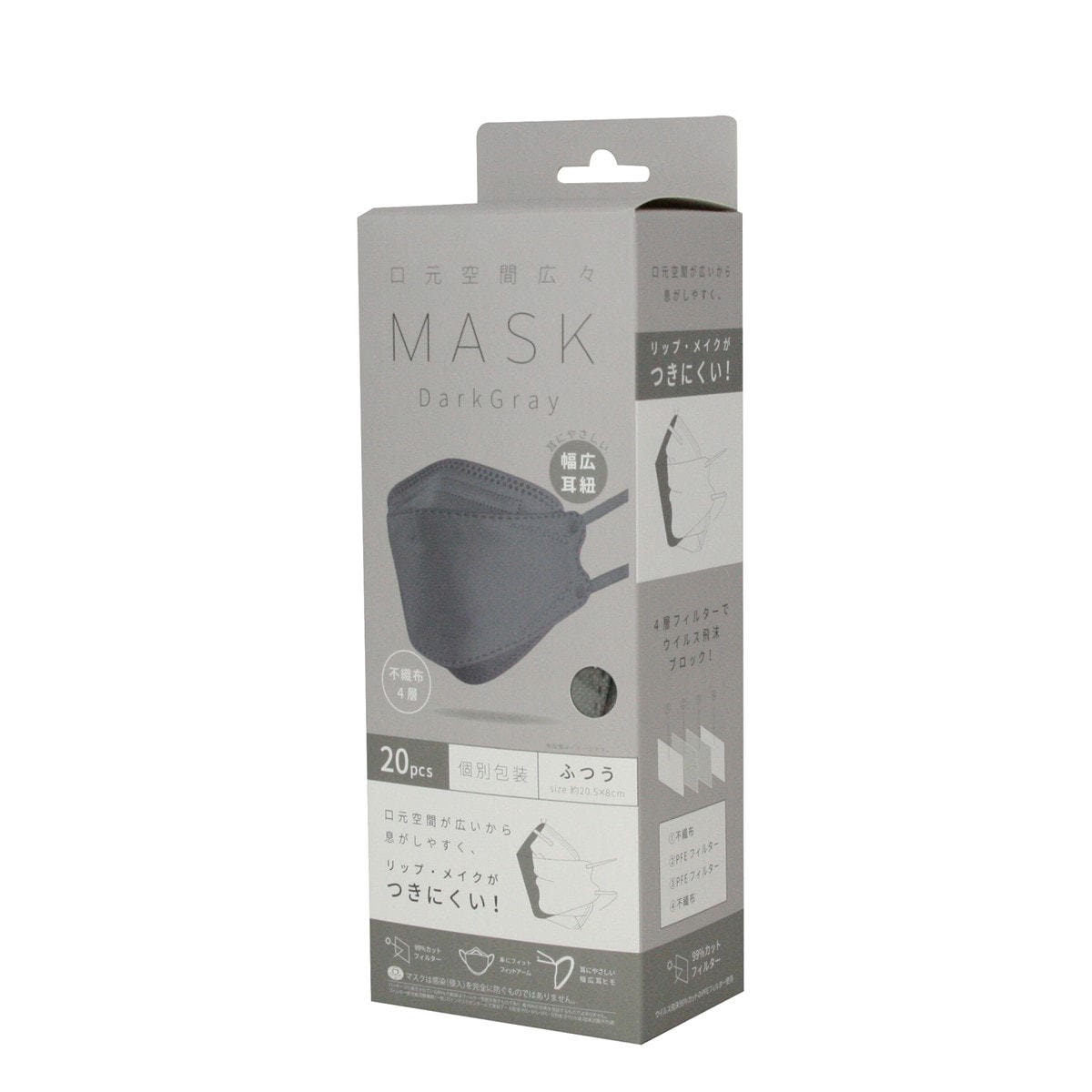 商品名:口元空間広々マスク ダークグレー 20枚入り(個包装)